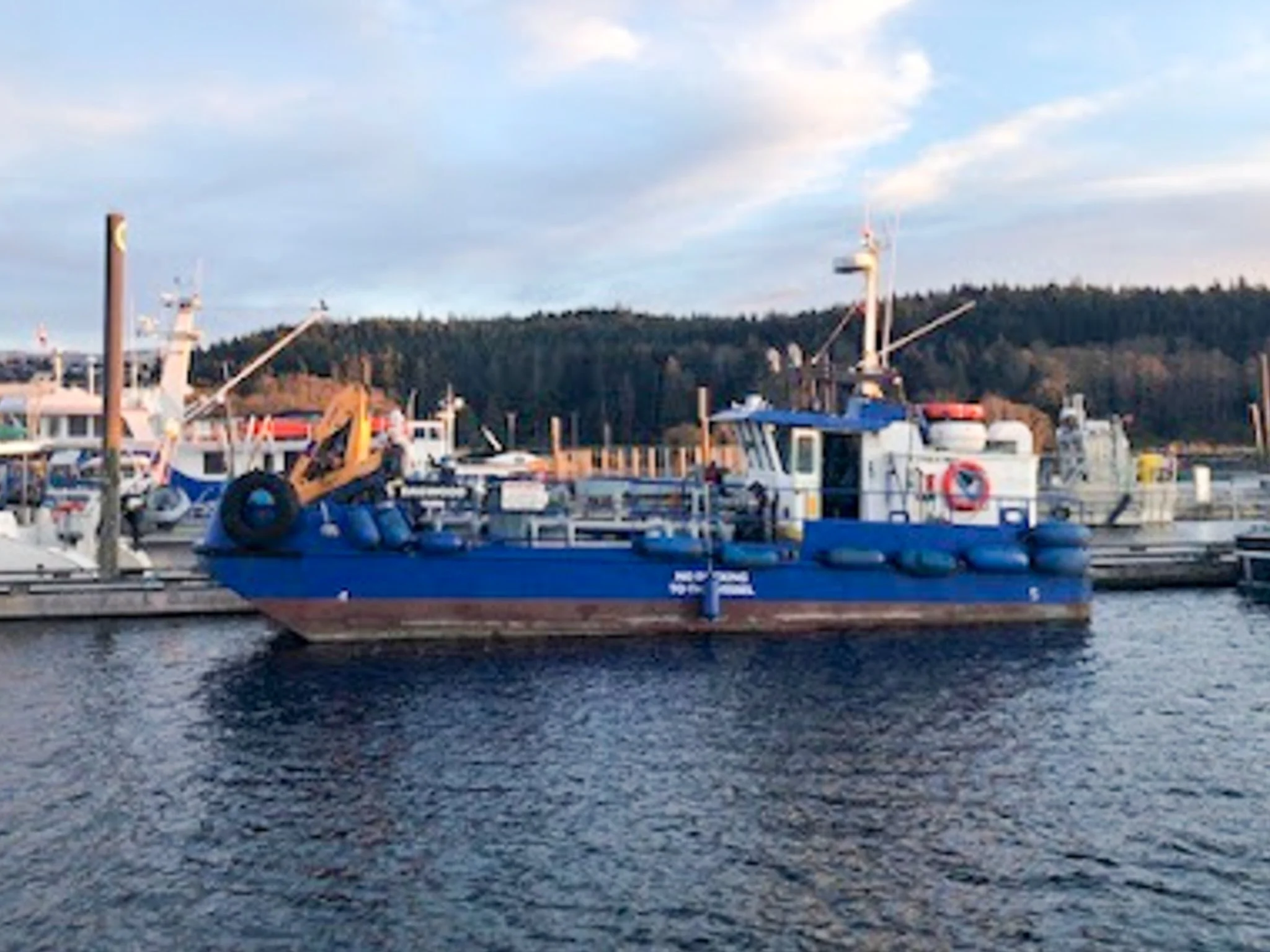 Our 40 foot Transport Canada approved vessel is made for fuel delivery, transfer and polishing and has a capacity of 10,000 gallons in 4 fuel tanks. It is equipped with all the necessary fuel polishing equipment, a 2-ton knuckle boom crane, and a sludge tank.